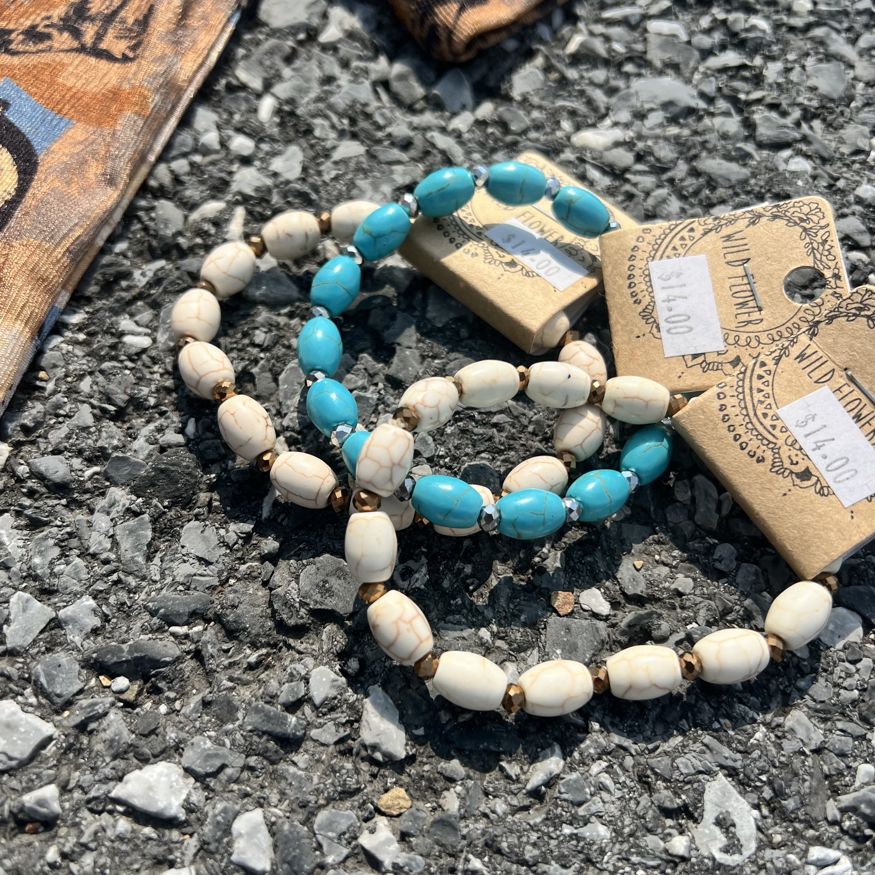 Layered turquoise necklaces and stacked beaded bracelets add a nod to southwestern heritage while giving the look a bit of flash. Top it off with a Heritage leather belt and you’ve got an outfit that’s polished but still playful.