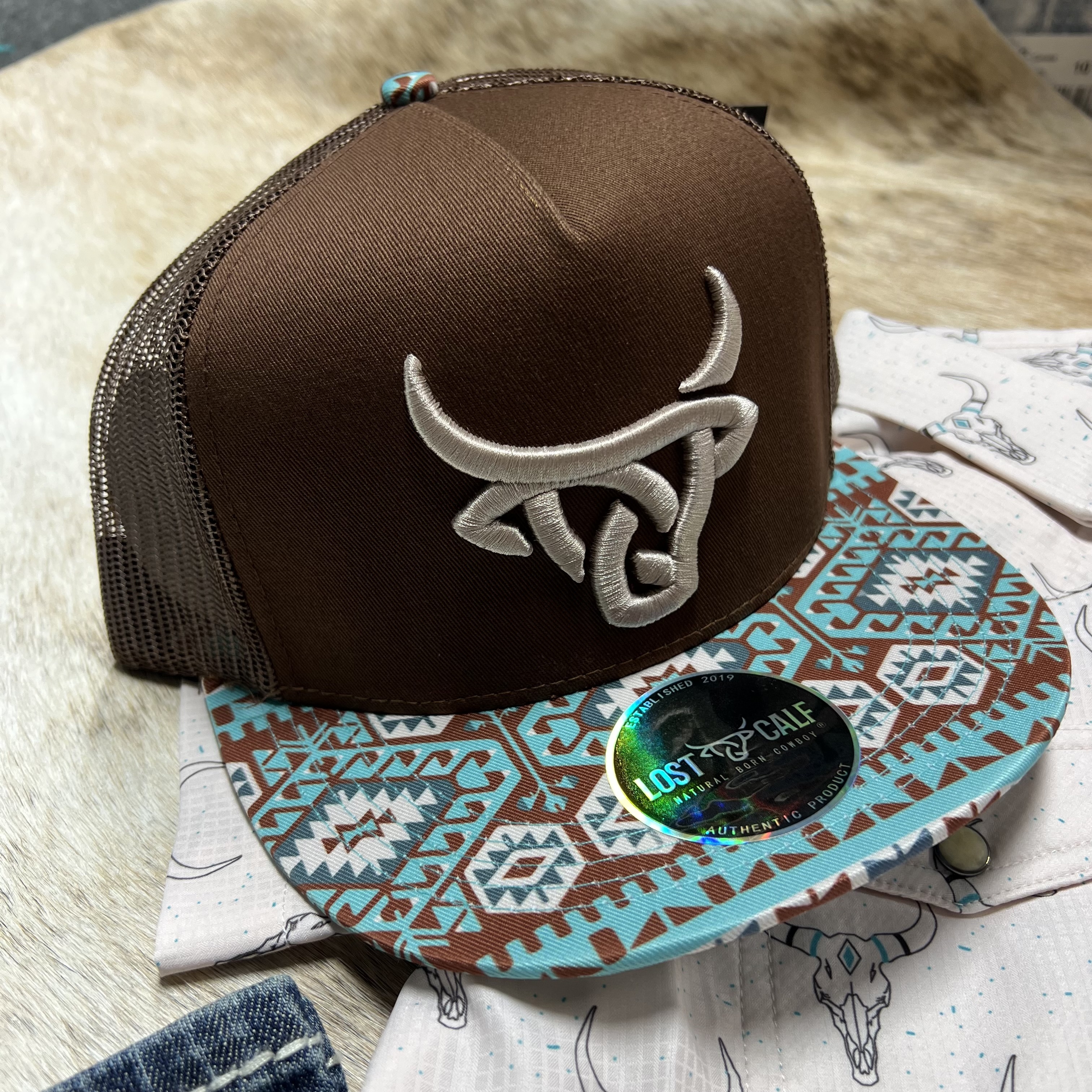 We went with a theme here, can you tell? Lost Calf is a newer brand to us and y'all are loving them. This fun brown and turquoise aztec hat went well with this outfit and makes it have a bit more of a casual look. Like, "I don't try to look this good, it just happens". Go ahead, be comfident little one. This is an adult hat, but is adjustable.