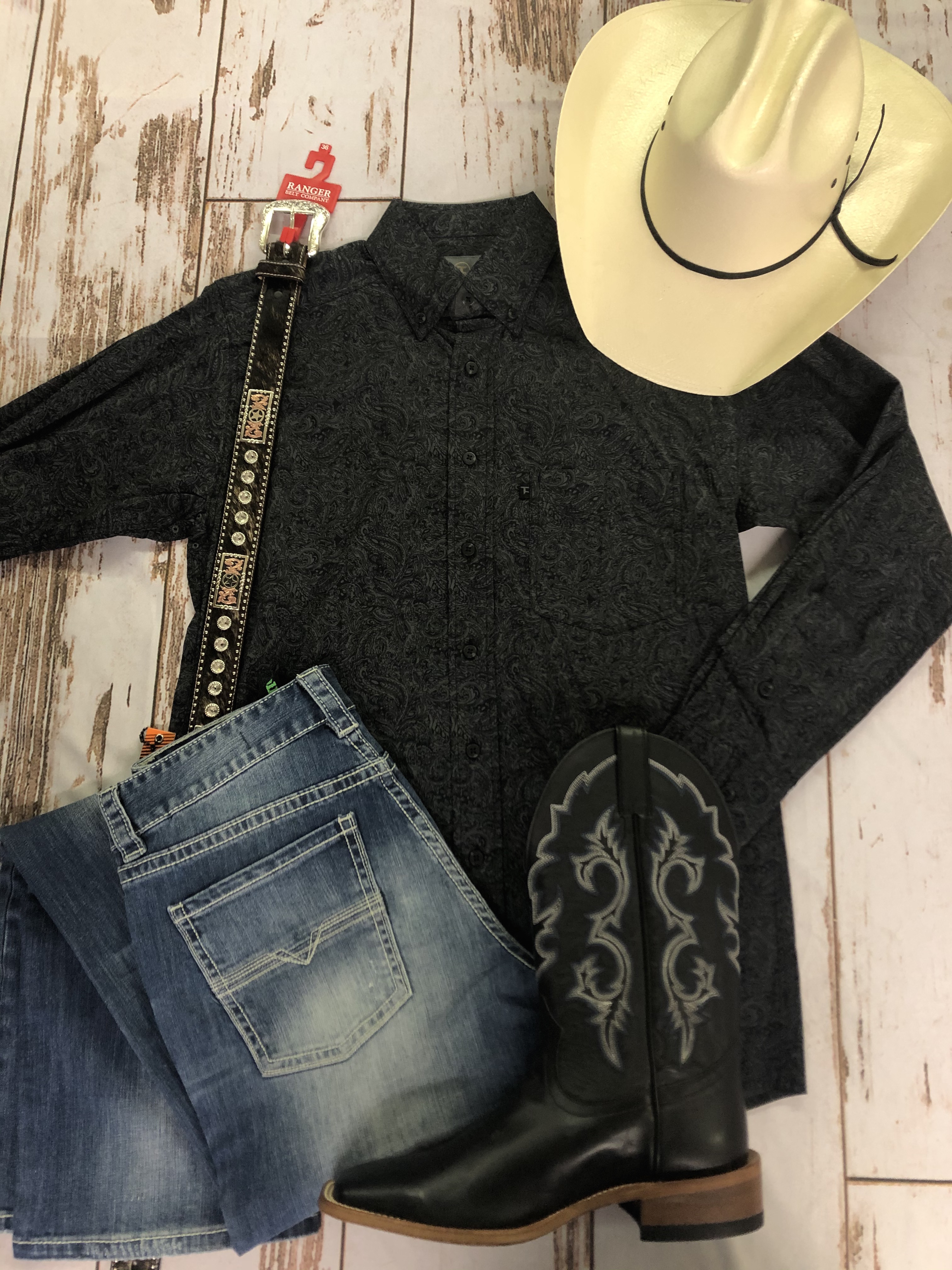 Tuf Cooper Performance by Panhandle Black Paisley Button Down Shirt TCD3611