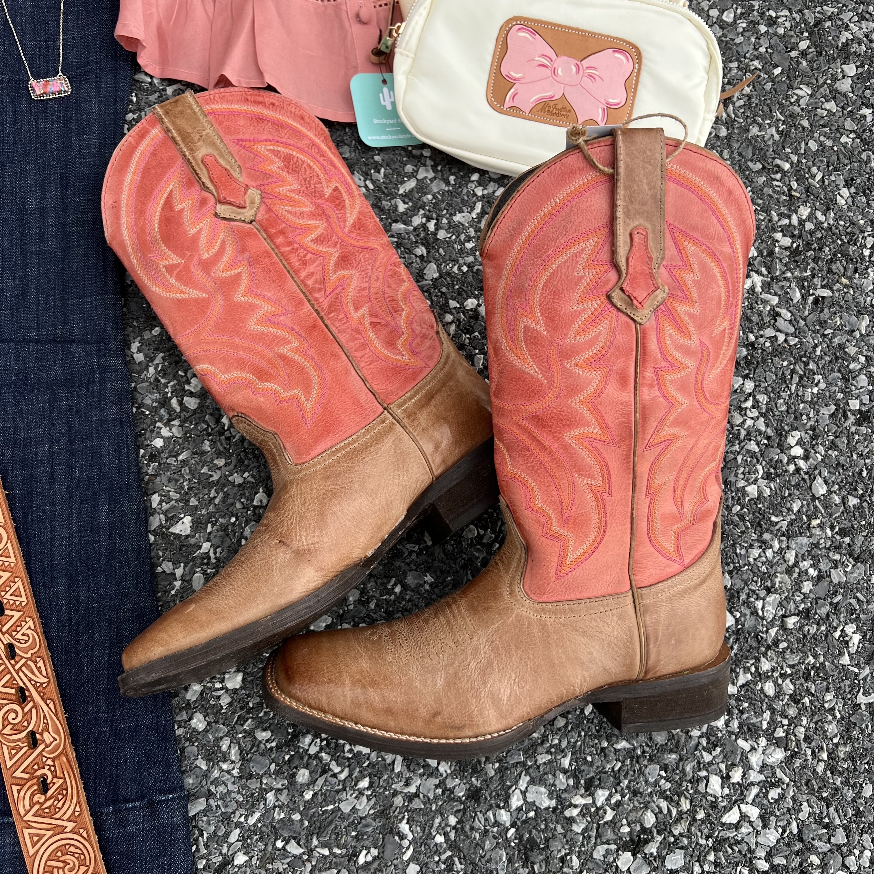 These boots were made for way more than walking. The bold coral uppers paired with classic tan leather bottoms are eye-catching in all the right ways. Whether you’re dressing them up or keeping it casual, these boots bring personality and pop.